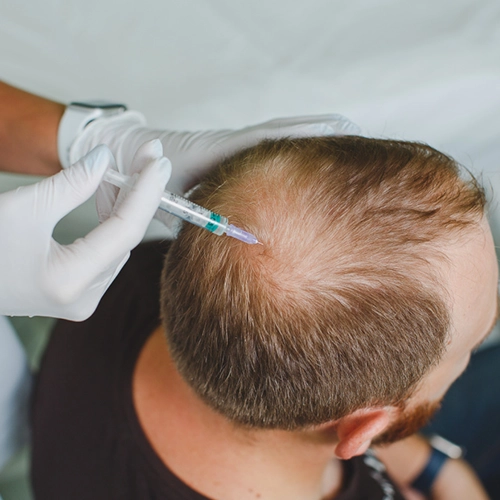 Each session usually takes about 30 to 45 minutes. We may apply a numbing cream before gently injecting the solution into selected scalp areas.