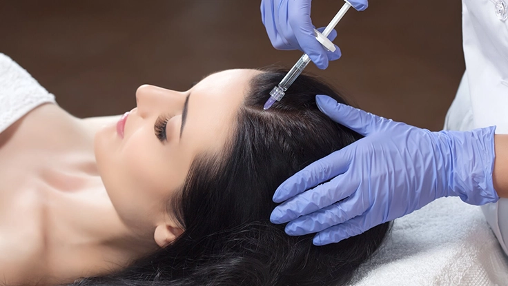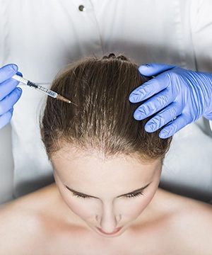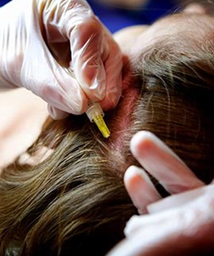 - We gently inject the PRP into your scalp where hair is thinning.