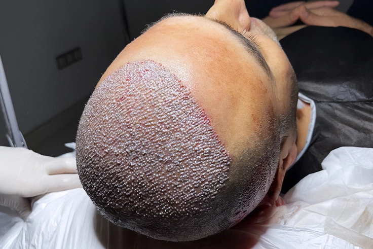Hair from the back or sides of your head is trimmed, cleaned, and numbed to ensure your complete comfort during the procedure.