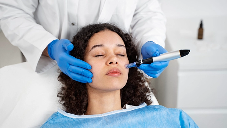 The procedure uses micro-injections or topical application, lasting 30–60 minutes with numbing support.
